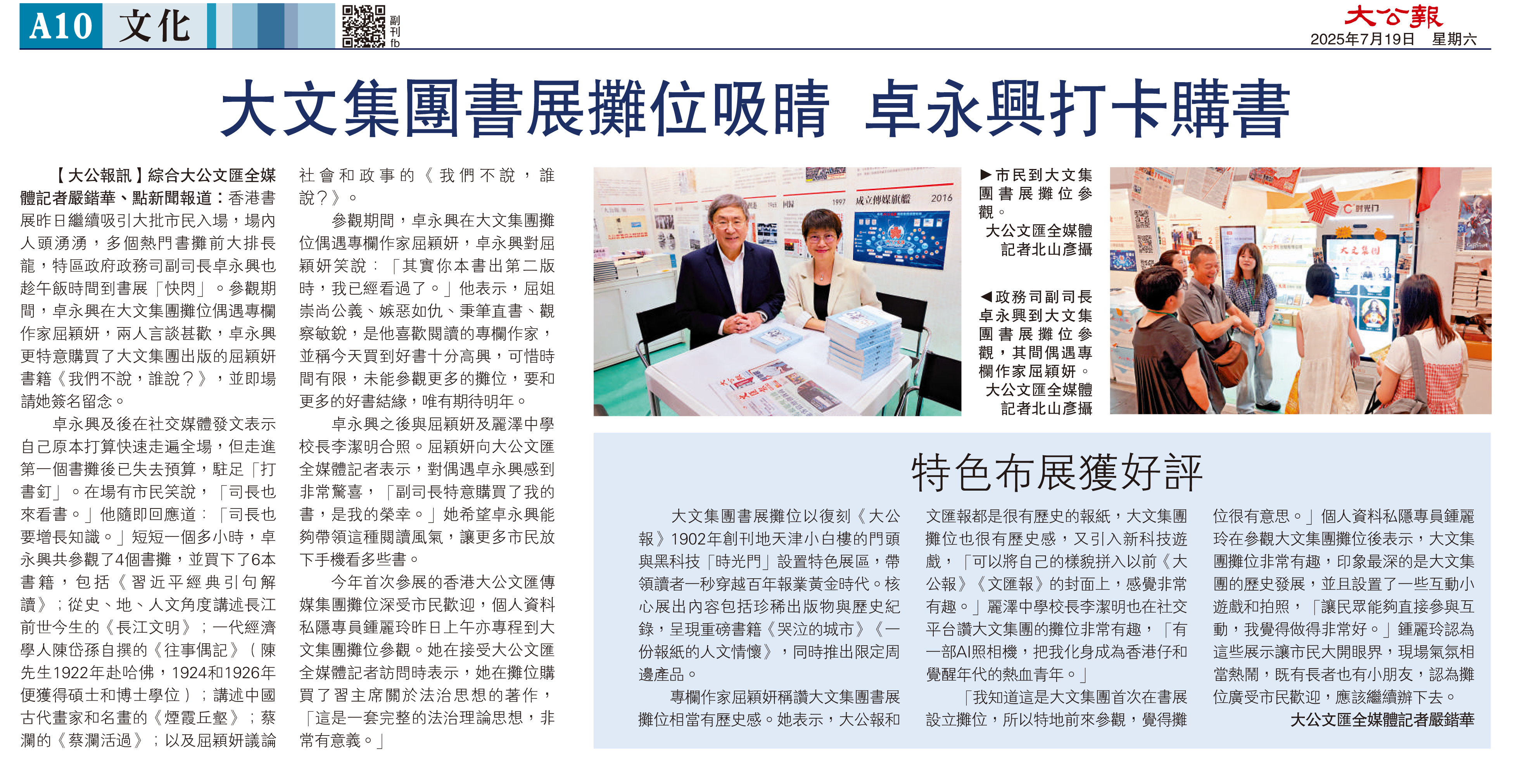 麗澤中學校長李潔明也在社交平台讚大文集團的攤位非常有趣, 「有一部AI照相機,把我化身成為香港仔和覺醒年代的熱血青年。」
